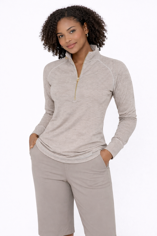 Swing out Sister Lottie Stripe 1/4 Zip Top in Elephant & White